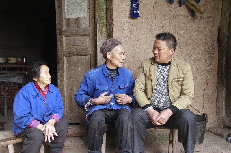上午11:20,杨忠平来到五保户杨朝碧家中,询问两位老人生活情况。