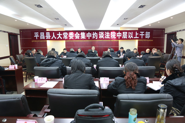 1月8日,县人大常委会集中约谈法院中层以上干部,县人大常委会党组书记、主任郑南贵出席座谈会并讲话。副主任沈鹏、县法院院长彭俊及法院中层以上干部参加会议。